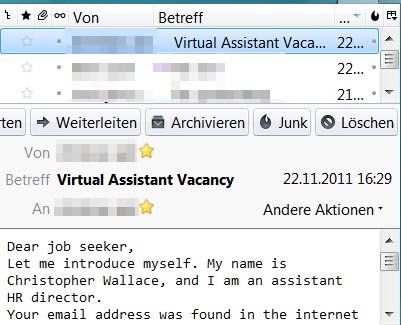 obwohl sie in Wirklichkeit von einer unbekannten Adresse kommt.- -