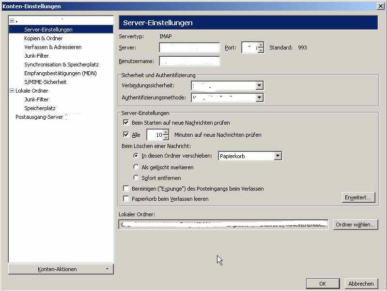 ZitatIch habe jetzt schon seit geraumer Zeit das Problem das gelöschte E-Mails nicht im Papierkorb landen, sondern sofort gelöscht werden.