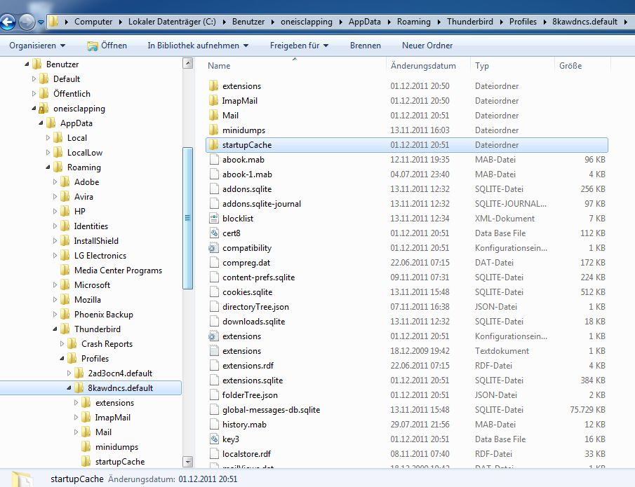 damit wir uns nicht lange dabei aufhalten, was du eventuelle noch brauchst und was nicht: Mache eine Sicherung des gesamten Ordners Thunderbird (direkt unter Roaming).
