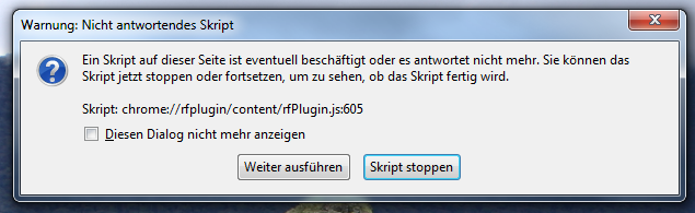 In diesem Popu wird darauf hingewiesen, dass ein Script: chrome://rfplugin/content/rfPlugin.js:590 beschädigt ist oder nicht antwortet.