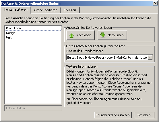 Arbeite seit Jahren mit einem Posteingang nun benötige ich aber einen seperaten, habe diesen angelegt und der hat sich nun ganz oben in der Hirarchie angelegt hätte ihn aber gerne ganz unten - wie kann ich den verschieben?