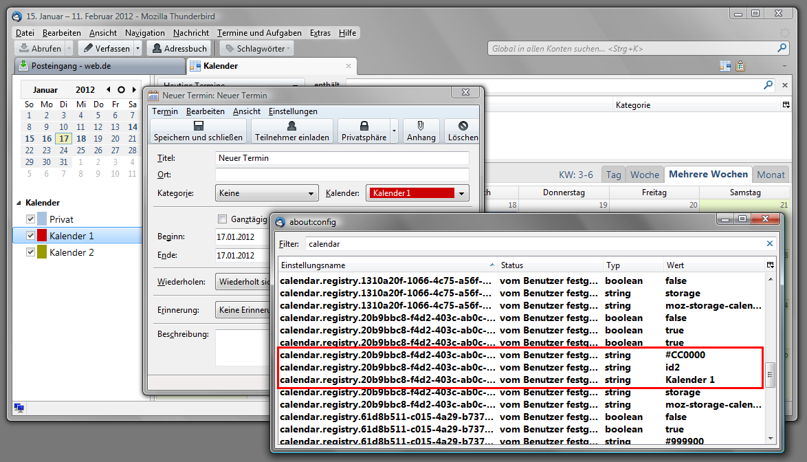 Danke für den Vorschlag aber wie komme ich in about:config in Thunderbird?