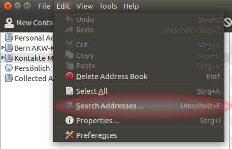 Da ich das Adressbuch so gut wie nie benutze, ist mir das noch gar nicht aufgefallen. Die Suche über Umsschalt + F geht bei mir unter Ubuntu Natty (11.04, Unity) ebenfalls nicht. Das ist vielleicht ein Feature der TB-Linux-Version.