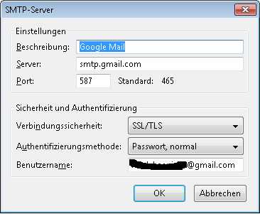 Die Nachricht konnte aus unbekannten Gründen nicht über den SMTP-Server smtp.googlemail.com gesendet werden. Bitte kontrollieren Sie die SMTP-Server-Einstellungen und versuchen Sie es nochmals oder kontaktieren Sie Ihren Netzwerkadministrator."