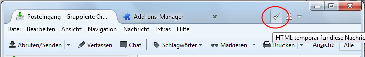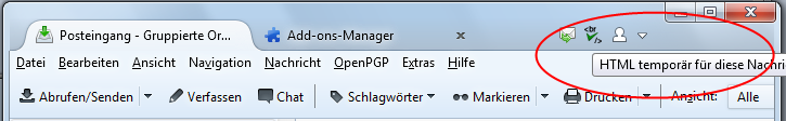 Wenn man einen Button berührt sollte der in der tabbar-toolbar mit einem hellen Verlauf im Hintergrund hervorgehoben werden. Das macht Thunderbird eigentlich selbst - also nicht das Addon (Mauszeiger im Screenshot ausgeblendet):