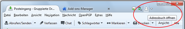 Wenn man einen Button berührt sollte der in der tabbar-toolbar mit einem hellen Verlauf im Hintergrund hervorgehoben werden. Das macht Thunderbird eigentlich selbst - also nicht das Addon (Mauszeiger im Screenshot ausgeblendet):