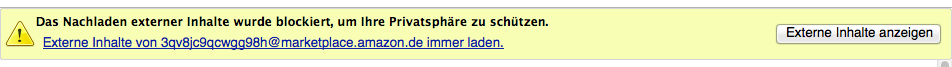 Hallo, ich habe an meinem Desktoprechner seit einiger Zeit (zu Anfang ohne dass ich es wirklich realisiert hätte) das Problem, dass dem dort installierten Thunderbird in Nachrichten, wie z.B. Louis oder Redcoon Newslettern, dieses Banner zum nachladen der externen Grafiken fehlt.