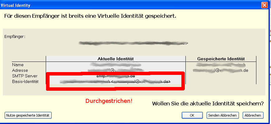 Und zweitens habe ich das Problem, dass es nichts bringt, wenn ich die neue Identität speichere. Beim nächsten mailen habe ich das Problem wieder ...