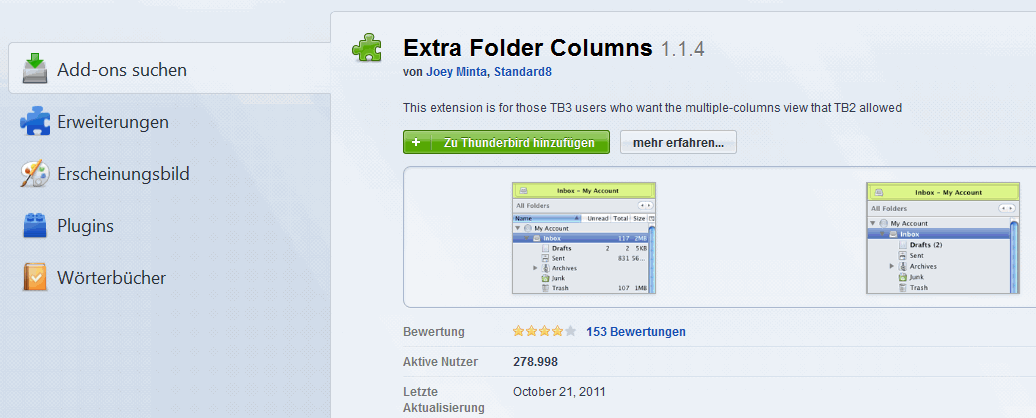 Doch, Extra Folder Columns ist installiert, siehe Deinen zweiten Screenshot. Das ist zwar ein empfehlenswertes Addon, hilft Dir aber bei Deinem aktuellen Problem nicht.