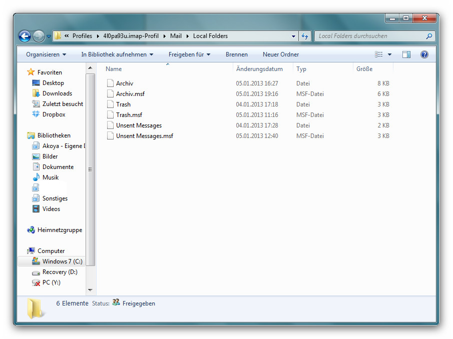 Welche Datei / en muss ich dafür kopieren ? Ich habe einen Screenshot vom POP3 Profil gemacht, wo meiner Meinung diese Mails liegen. Und einen Screenshot vom IMAP Profil, wo ich sie hin kopieren möchte. In den Archiv Ordner und Lokale Ordner. Hoffe, dass ich bei beiden Pfaden richtig lag.