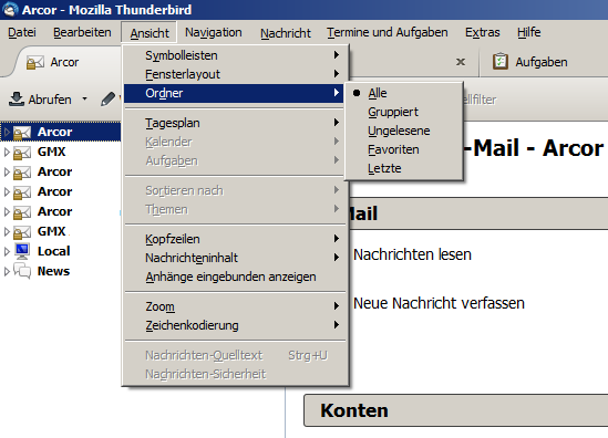 2. Einstellungen? Kann ich mir nicht vorstellen, da in der Regel der TB die letzte Ansicht korrekt abspeichert aber nicht immer.