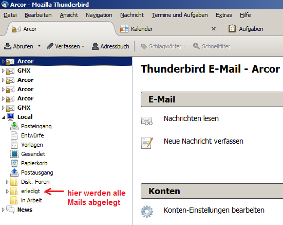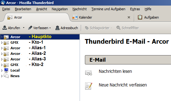 Postfachanbieter (z.B. GMX): ARCOR und GMX