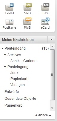 Entwürfe, Vorlagen, Gesendet, Papierkorb.