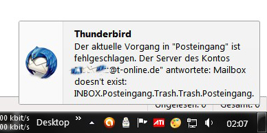 Ich habe auf dem PC das Konto gelöscht und neu installiert, das brachte nichts. Zuerst landeten auf dem PC die gelöschten Mails in keinem meiner Ordner, eine Stunde später konnte ich gar keine Mails abrufen (nur wie früher mit der T-Online E-Mail Software), auf dem Netbook ist löschen unmöglich, es kommt nur eine Fehlermeldung (siehe Anhang, Bild Nr. 2). Die Systemwiederherstellung brachte nichts. Wie kann man bitte das Ganze zurücksetzen, annulieren, am besten von Null anfangen, alle Voreinstellungen auf dem Server löschen ?? Ich habe lange Stunden damit zugebracht, das Menü viele Male gründlich gelesen. So komme ich gar nicht weiter.