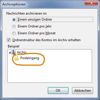 "Ordnerstruktur des Kontos im Archiv erhalten" gesetzt.