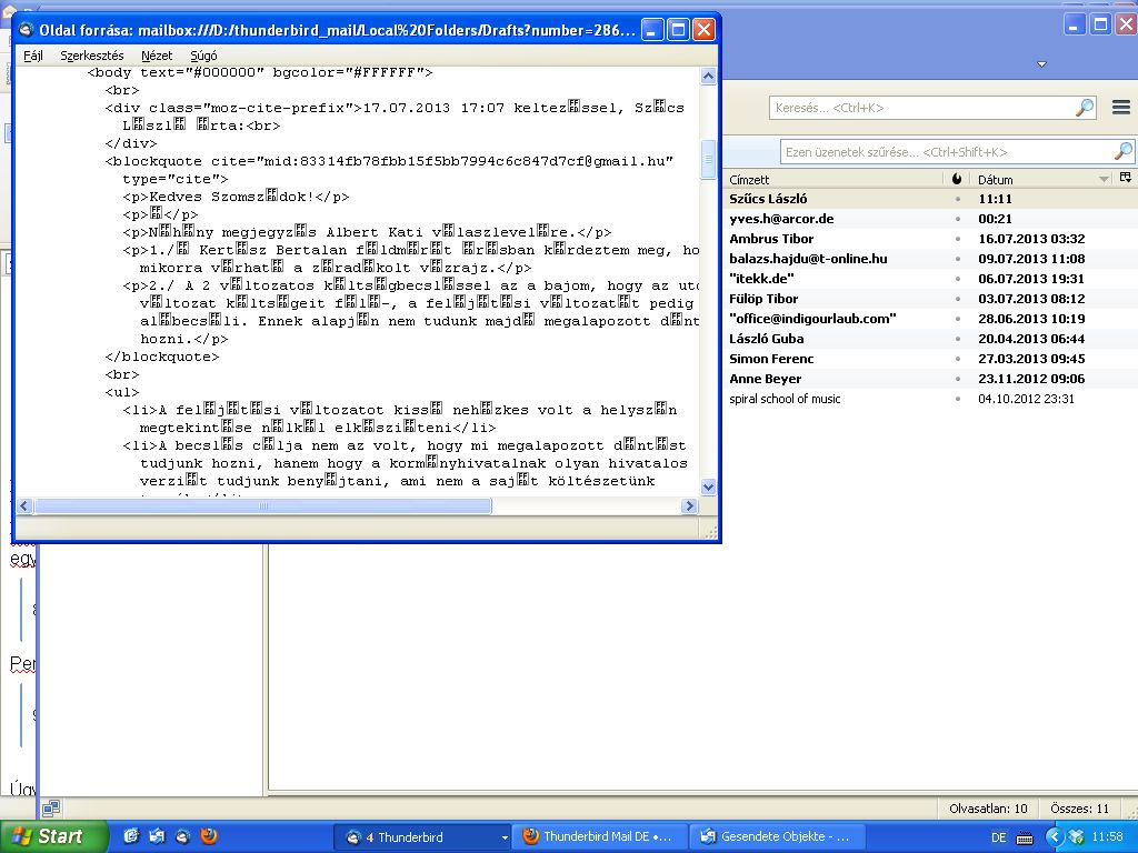 Klick mal die Mail an und dann schau dir den Quelltext an (Strg u oder mit Ansicht>Nachrichten-Quelltext), ist der lesbar?