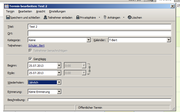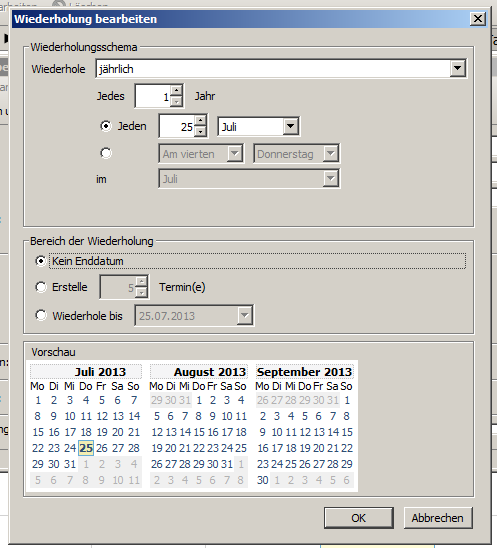 Wiederholender jährlicher ganztägiger Termin (z.B Geburtstag).