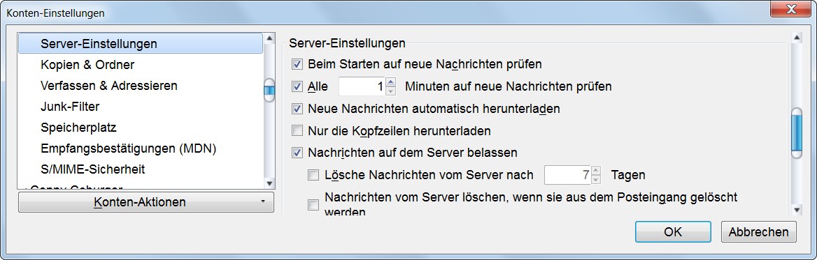 Ich habe folgende Einstellungen in TB zu meinem Mail-Konto: