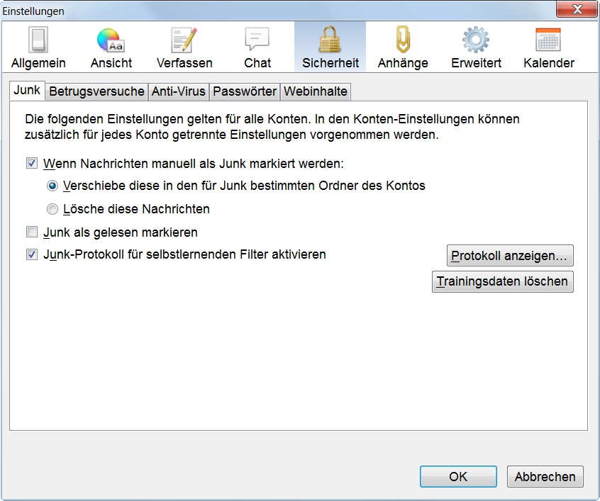 Das kann eigentlich nicht sein, da ich heute mehrere Mails empfangen habe, die von beiden PC's, unabhängig davon, wann ich diese Mails mit TB abgerufen habe, von TB automatisch in den Junk-Ordner verschoben wurden aber dennoch auf dem Server vorhanden sind.