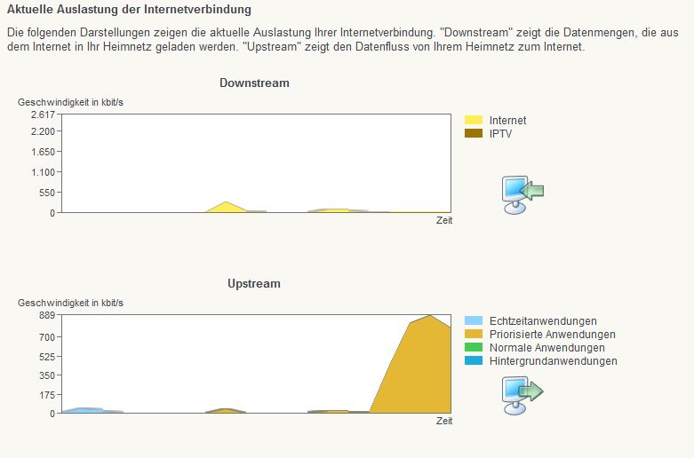 Ja, der Farbe nach, behandelt die Fritzbox den Upload eindeutig als priorisiert. Ich kann Dir leider nicht sagen, warum. Allerdings würde ich das