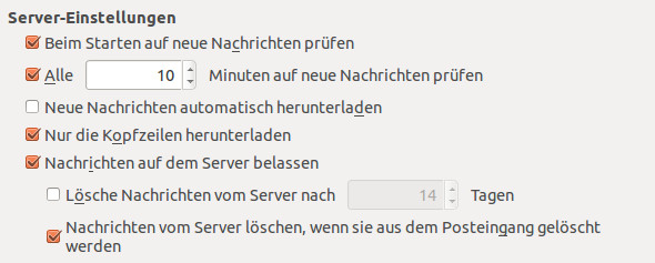 Ich habe zwar "Nachrichten auf dem Server belassen" gechecked, aber das bezieht sich doch wohl auf den Fall beim Downloaden der Nachrichten oder? Also damit lediglich die Kopfzeilen abgeholt werden und nichts weiter mit den Nachrichten gemacht wird, muss man das gechecked haben oder?