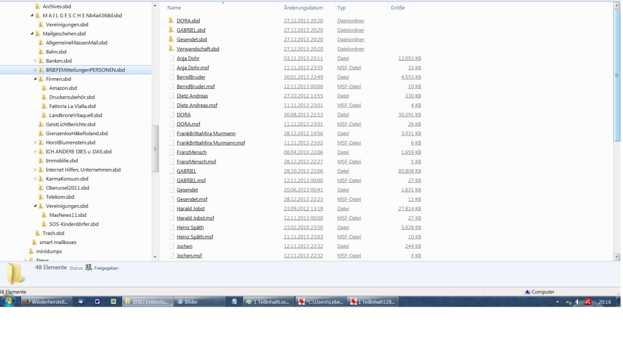 Die zweite Frage ist die, wenn Mails, die ich kurz vor dem Crash in LOKALE ORDNER gezogen habe, nicht im Profilordner sind, kann ich oder man, sie dann noch woanders suchen und finden?