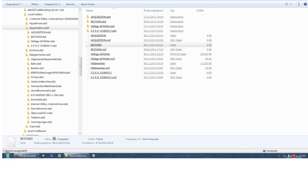 Dabei stellte ich fest, daß einige Ordner in die ich neue Mails ablegen wollte, also vom IMAP konto in den LOKALE ORDNER im TB, leer waren. Die darin früher darin abgelegten Mails waren weg. Spurlos.
