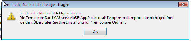 Abhilfe ist möglich, wenn ich den Inhalt der Ursprungs-E-Mail in der "Antworten" - E-Mail lösche. Manchmal konnte ich auch die abgespeicherte E-Mail versenden, nachdem Windows abgeschaltet worden war. Das war aber nicht immer reproduzierbar.