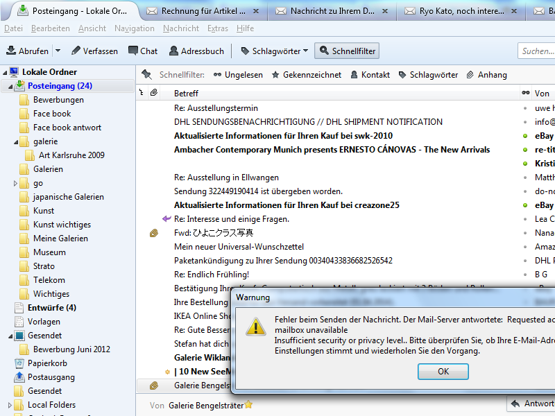 Plötzlich nicht mehr mit Thunderbird Mail abschicken