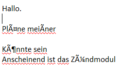 Ich habe ein komisches Problem. Ich verfasse oft emails, die ich dann zunächst mal abspeichere (unter Entwürfe). Öffne ich diese dann wieder zum späteren bearbeiten sind alle Umlaute und Sonderzeichen fehlerhaft (Beispiel siehe Bild)