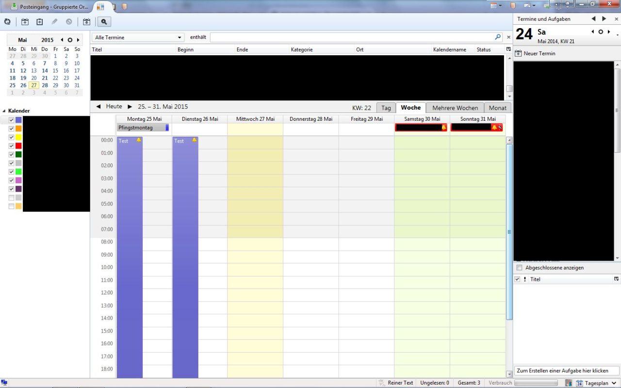 ja bei mir auch (siehe Screenshot der Pfingstmontag). Nur Einladungen machen Probleme. Wir sollten übrigens nicht Outlook die Schuld geben. Der Screenshot zeigt eine Kalendereinladung, die ich mir mittels iOS selber zu geschickt habe und die dort in zwei Kalender-Apps (der Standard-Kalender und Calendars 5) absolut korrekt dargestellt wird.