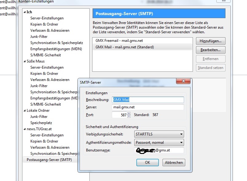 hatte bisher nie Probleme mit Thunderbird und meinen 2 Konten bei GMX.