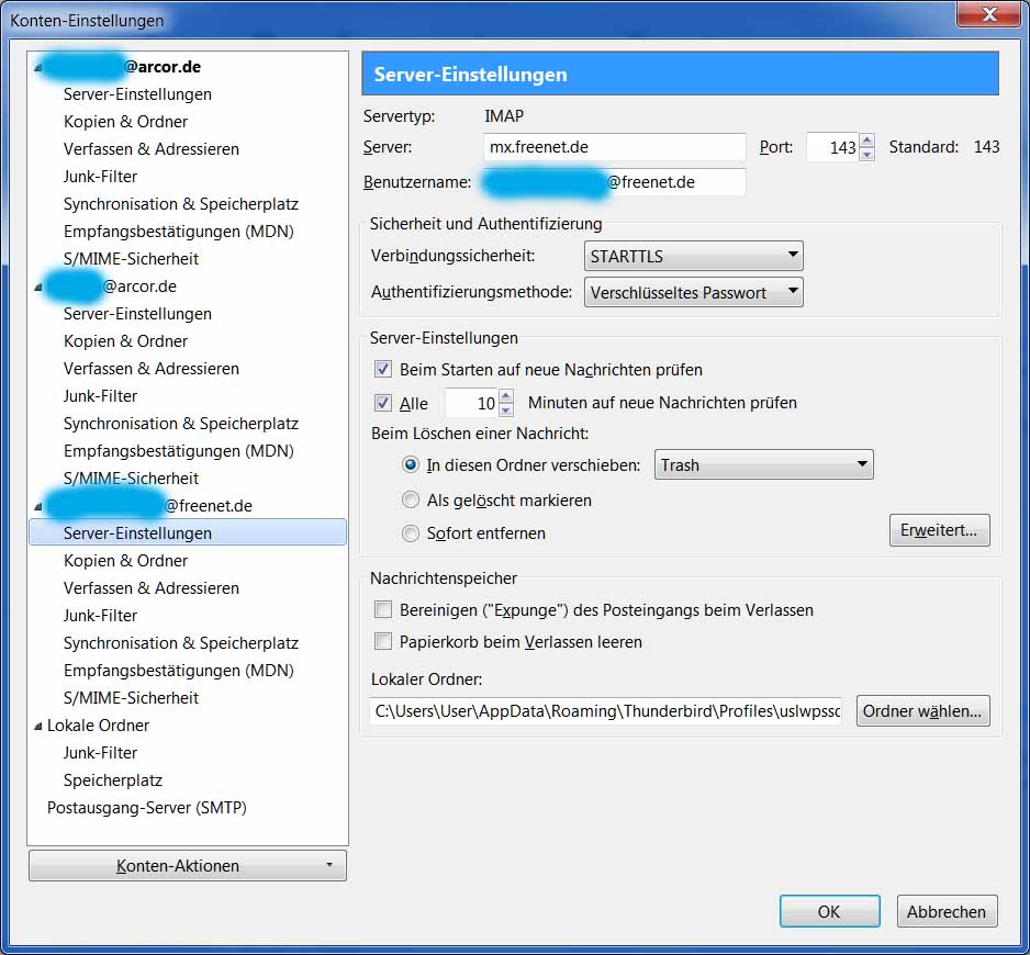 Über mein E-Mail-Account von freenet kann ich Mails über Thunderbird versenden.
