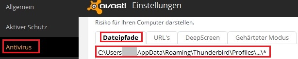 Füge an diesen Stellen den Pfad des Thunderbird-Profils hinzu.