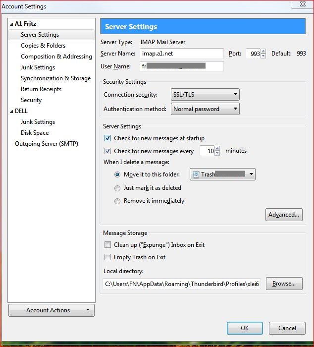Laut A1 Support Team, dürfte die Ursache dieses "Fehlers" bei Thunderbird liegen.