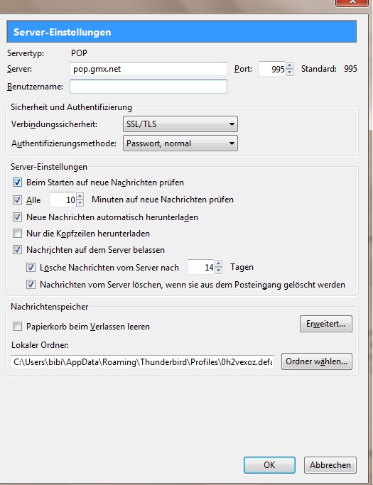 Port habe ich auf 995, war vorher auf 993, habe bei GMX nachgeschaut was es sein muss.