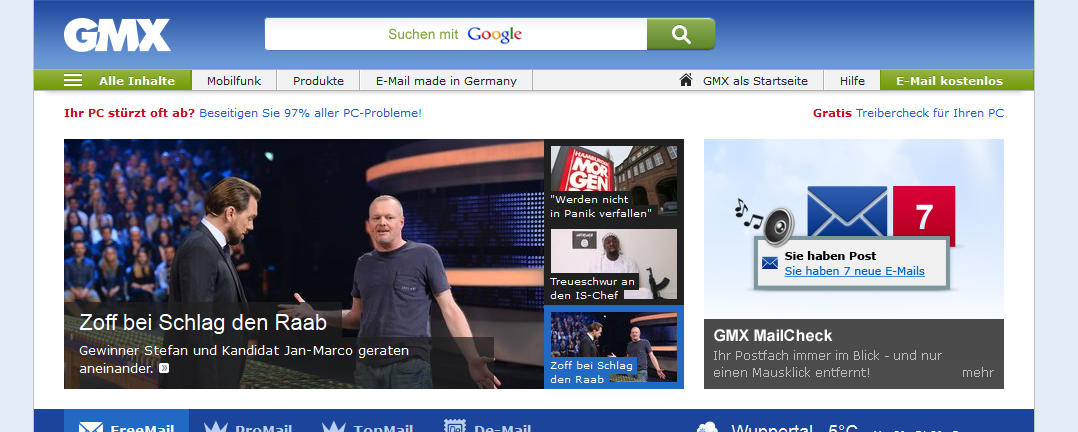 (*) die berühmte Ausnahme von der Regel ist die gelegentlich vorgeschaltete Seite, wenn mir GMX unter teils putzigen Gründen Top-Mail (oder ProMail?) offeriert.