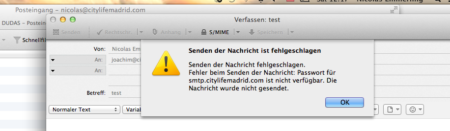 Beim versenden von Emails von meinem Laptop bekomme ich folgende Fehlermeldung. Dies gilt fur alle Emailadressen/Postfacher die ich auf meinem Laptop unter Thunderbird installiert habe.