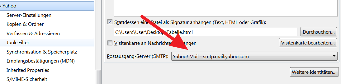 Ich habe das tatsächlich missverständlich formuliert. Ich sprach von den Konteneinstellungen und meinte damit im rechten Fenster weit unten.