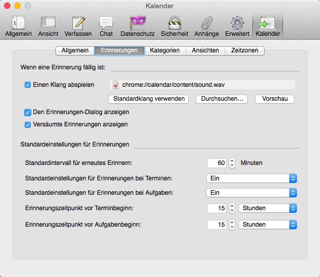 Betroffen sind aber alle Erinnerungen, sowohl die für selbst angelegte Termine, als auch die von Birthday Reminder.