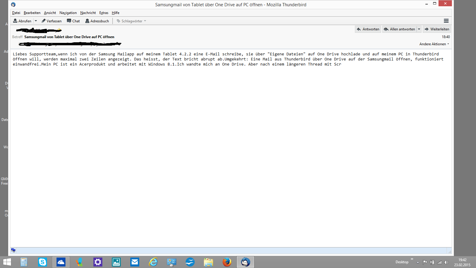 Umgekehrt: Eine Mail aus Thunderbird über One Drive auf der Samsungmailapp öffnen, funktioniert einwandfrei.