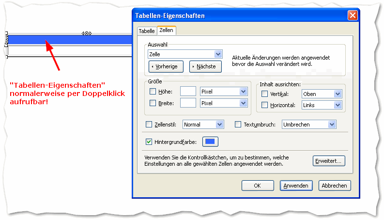Daher bin ich leider gezwungen über --> Format --> Tabellenzellen-Eigenschaften das Bearbeitungsfenster aufzurufen.