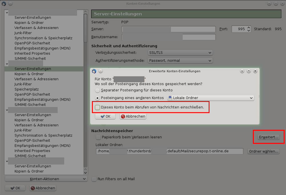 Ich hab also ganz einfach in TB ein neues Konto mit der gleichen E-Mail-Adresse angelegt, und