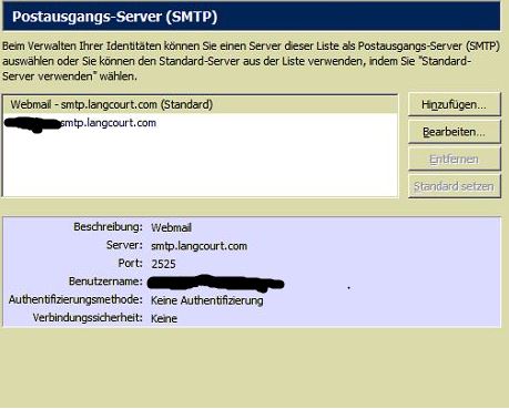 Die Nachricht konnte nicht gesendet werden, weil der Verbindungsaufbau mit dem SMTP-Server smtp.langcourt.com fehlgeschlagen ist. Der Server ist entweder nicht verfügbar oder lehnt SMTP-Verbindungen ab. Bitte kontrollieren Sie die SMTP-Server-Einstellungen und versuchen Sie es nochmals.