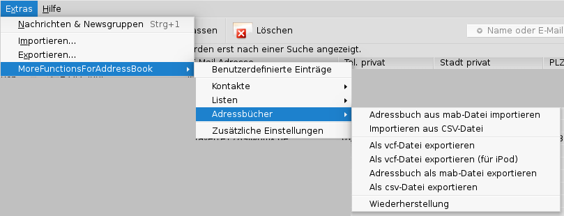 Bei mir sieht das Extras-Menü bei geöffnetem Adressbuch folgendermaßen aus: