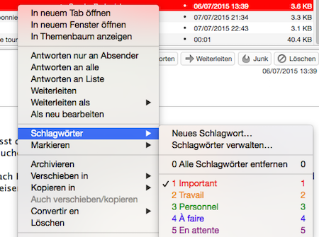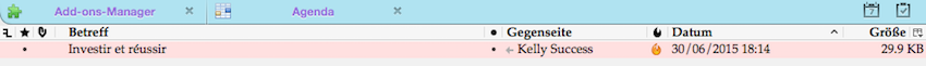 ich habe in der Liste meiner Nachrichten seit ein paar Tagen ein paar wenige, die farbig hinterlegt sind. Die Schrift ist weiterhin schwarz, aber der Hintergrund is, ähm, ich nenns mal lachsfarbig. Hier ein Beispiel aus meinem Spam-Ordner: