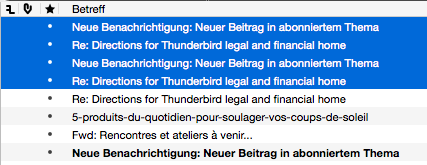 Der Balken ist auch verändert, wenn ich mehrere Mails markiere, das stellt der zweite Screenshot dar.