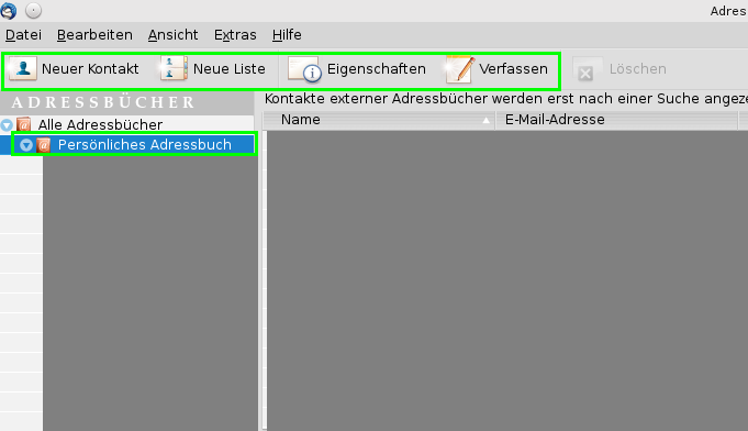 Cursorbalken links (oben grau, grün umrahmt) verschieben nach Adressbuch Deiner Wahl (im Bild "Persönliches Adressbuch"):