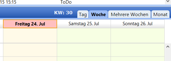 mein Lightning zeigt in der Wochenansicht den Schönheitsfehler, dass die Felder "Ganzer Tag" breiter als die Stundenfelder sind; das sieht unschön aus. Dieser Schönheitsfehler tritt manchmal auf und manchmal nicht.