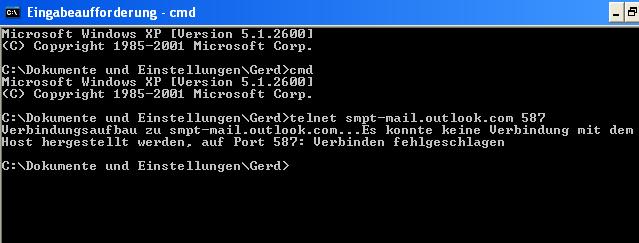 Mache bitte einen Telnetbefehl auf den SMTP-Server nach dieser Anleitung Mit Telnet Verbindung überprüfen